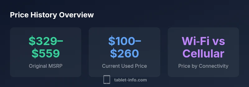 Original MSRP for the 5th generation iPad ranged from about $329 for the 32GB Wi‑Fi model to roughly $559 for the 128GB Wi‑Fi + Cellular version. In today’s market, used and refurbished units typically sell for about $100–$260, depending on storage, connectivity, condition, and whether they’re sold by reputable refurbishers. This price range reflects historical depreciation and current demand, according to Tablet Info analysis, 2026.