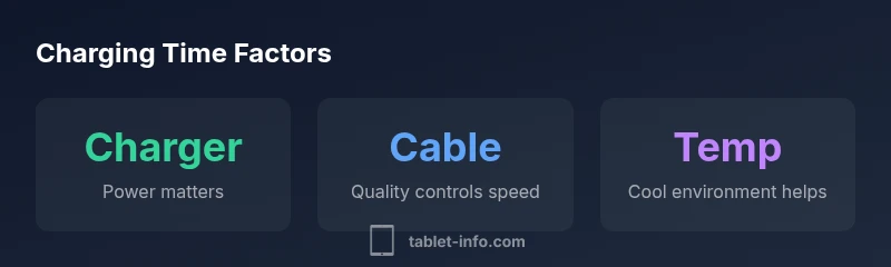 In practice, charging speed on an iPad depends on several interacting factors: charger wattage, model and battery size, cable quality, and temperature. By using a modern USB-C PD charger, a reliable cable, and a cool charging environment, most users experience a practical charging experience that is considerably faster than older accessories. As always, if you notice unusual slowness, start with basic hardware checks and testing to identify bottlenecks. Tablet Info’s analysis emphasizes that small improvements in setup often yield meaningful time gains without compromising battery health.