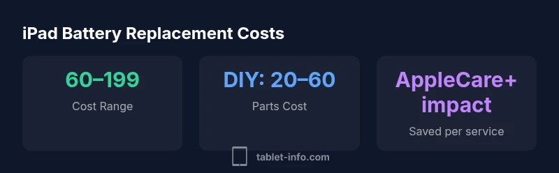 Most iPad battery replacements fall in the $60–$199 range, depending on model and service option. How much does it cost to replace an ipad battery? Out-of-warranty pricing varies by model and provider, with AppleCare+ coverage reducing the out-of-pocket cost, while DIY or third-party services may offer lower prices with trade-offs.