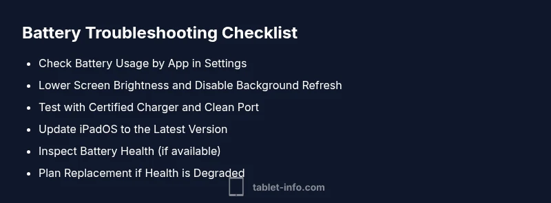 Learn practical, step-by-step troubleshooting to diagnose and fix common iPad battery issues, from rapid drain to charging problems, with safe, proven tips.