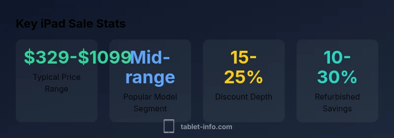 In 2026, the typical price range for an apple ipad for sale during promotions spans roughly $329 to $1099, depending on model and storage. The Tablet Info analysis indicates the best value often comes from mid-range models with substantial software support, while refurbished units can save 15-25% at checkout for many shoppers.