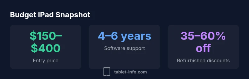 According to Tablet Info, budget-conscious shoppers should value ongoing software support and reliable warranties just as highly as price. The Tablet Info team emphasizes using verified refurb channels and reputable retailers to minimize risk. By following these guidelines, readers can confidently select a cheap iPad that remains practical and secure for everyday use.