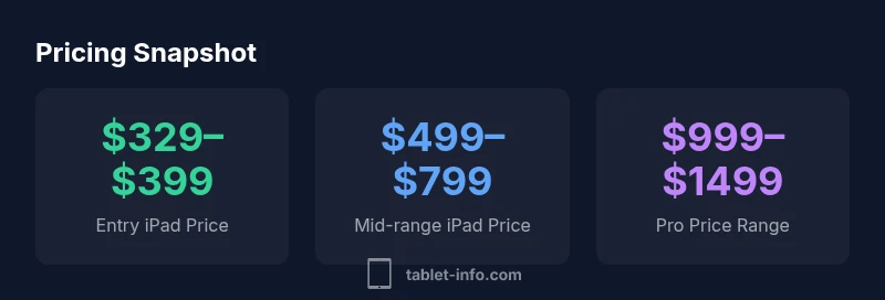 Scenario A: A student buying an entry-level iPad Wi‑Fi with a keyboard and Pencil, used mainly for note-taking and light research, costs around the base price plus a bundle. Scenario B: A remote worker who values a larger screen and pro apps might lean toward an iPad Pro with cellular and higher storage, raising upfront costs but enabling better multitasking. Scenario C: A casual user upgrading from an older iPad or iPad mini may trade up to a mid-range Air or compact mini, balancing portability and performance. Tablet Info analysis shows that for the typical daily user, the best value often comes from selecting the model with enough storage and only the necessary connectivity, then pairing with essential accessories.