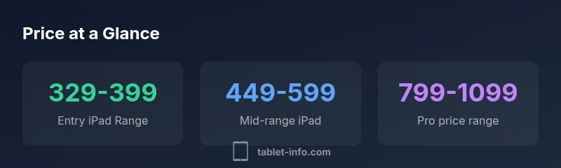 Across the current iPad lineup, the best price range typically spans from about $329 to $1099, depending on model, storage, and connectivity. Entry-level models often hit the lower end, while Pro configurations sit at the upper end. With seasonal sales, bundle offers, and educator discounts, you can sometimes beat the listed price by 10–20%. Tablet Info Analysis, 2026.