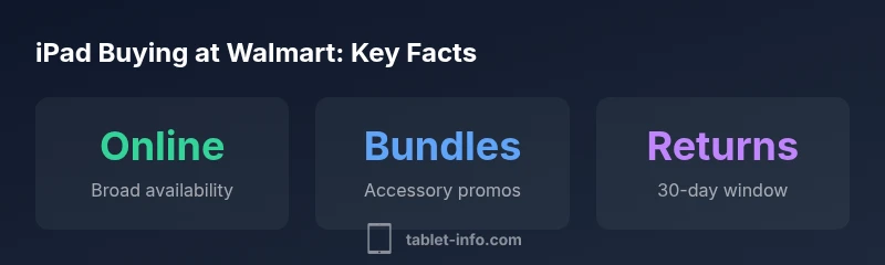 The Tablet Info team recommends a disciplined approach to buying an iPad at Walmart in 2026. Start with a clear use-case and compare models across generations to identify the best balance of price, performance, and future-proofing. Check online listings, then verify stock in your local Walmart to avoid delays. When a bundle aligns with your needs and price, proceed, but always review warranty terms and the return policy before finalizing the purchase. Overall, Walmart can be a strong option for value-conscious buyers who take a cross-channel, time-aware approach.