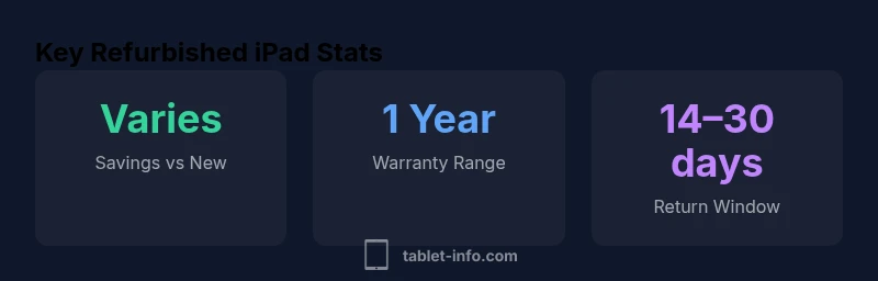 For many buyers, the appeal of 'ipad on sale refurbished' is clear: you gain access to a high-quality iPad at a fraction of the new price. Refurbished devices are often returned or used as trade-ins; they undergo testing, repair, and cleaning before returning to market. The Tablet Info team notes that when purchased from reputable refurbishers with transparent grading and warranty, refurbished iPads can perform on par with new devices for most everyday tasks, including browsing, streaming, note-taking, and light creative work. Nevertheless, there are trade-offs: older chip generations, battery wear, and cosmetic blemishes can affect value. Your goal is to maximize reliability while minimizing cost. In practice, that means narrowing the field to vendors with clear repair history, verifiable service notes, and accessible customer support. Consumers should also compare refurb pricing to new devices during sales events to determine if the gulf is worth the upgrade. If you want the best overall experience, focus on models that have a recent iPadOS compatibility sheet and are known to ship with original accessories or equivalent replacements. According to Tablet Info, the most reassuring deals come from programs that publish battery health metrics and post-purchase health checks; this transparency reduces risk and helps you buy with confidence.