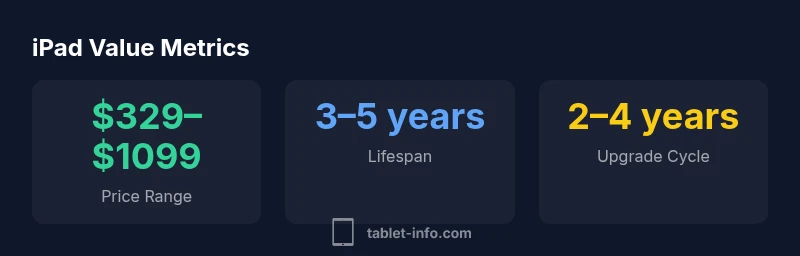 To place this in perspective, think about price bands across the current lineup and how they map to intended use. A base iPad or iPad Air may cover most casual tasks at a lower price point, while iPad Pro targets power users with advanced apps and large displays. The Tablet Info team emphasizes that value comes from aligning price with intended tasks, not from chasing the most expensive model for bragging rights. For context, today’s price spectrum typically spans entry-level options through premium configurations, with accessories (pencils, keyboards, cases) adding meaningful but optional cost. As always, the value proposition is best judged by your actual workflow, not by spec sheets alone.