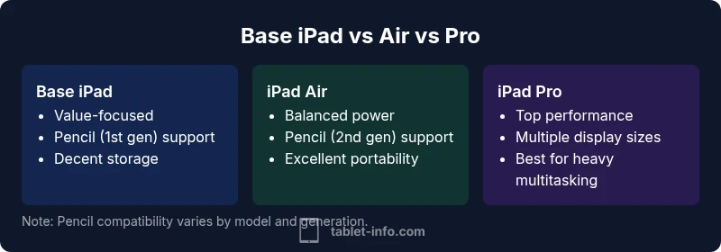 For school use, the best balance is typically a Base iPad with Apple Pencil support and adequate storage, paired with a protective case. If you need more performance for demanding apps or future-proofing, the iPad Air offers a strong middle ground, while the iPad Pro is ideal for power users and heavy multitaskers. This comparison explains when each makes sense.