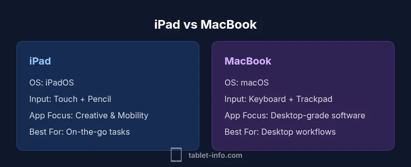 Does iPad work like a MacBook? Not exactly, but it covers many MacBook-style tasks. According to Tablet Info, the iPad shines in portability, app versatility, and touch-based workflows, while macOS laptops win on traditional keyboard-heavy productivity and file management. Your decision hinges on software needs, multitasking habits, and whether you value a laptop-like desktop experience.