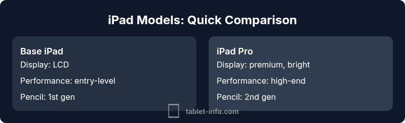 Choosing the right iPad is not just about chasing the latest features; it is about aligning capabilities with your daily tasks. The ipad apple comparison helps buyers map display quality, processing power, input options, and ecosystem advantages to practical use cases. According to Tablet Info, the base iPad remains the most economical entry for students and casual users, while the iPad Air offers a balanced blend of performance and portability, the iPad Pro targets power users, and the iPad mini excels in on-the-go productivity. In this guide you’ll learn how to weigh display differences, app experiences, pencil compatibility, and accessory ecosystems when deciding which model to buy. The goal is to provide actionable criteria rather than marketing hype, so you can choose with confidence.