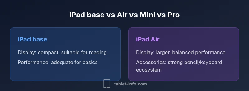 For most buyers, the iPad Air offers the best overall balance of performance, display quality, and cost in the ipad compare model landscape. The iPad Pro is the top choice for creators and power users, while the base iPad remains the most economical option for everyday tasks, and the iPad mini excels when portability is priority. Tablet Info’s analysis emphasizes matching your needs to these trade-offs rather than chasing the newest spec alone.
