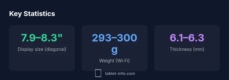 The iPad mini’s size depends on generation: older models use a 7.9-inch display with compact overall dimensions around 203.2 by 134.7 by 6.1 mm and about 300 grams, while the latest iPad mini (6th generation) sports an 8.3-inch display with dimensions about 195.4 by 134.8 by 6.3 mm and a weight around 293 grams (Wi‑Fi) or 297 grams (cellular).