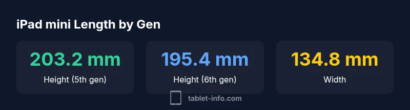 In tablet measurements, length typically refers to the device's longest edge when held in portrait orientation—the height of the tablet. For the iPad mini, the term length is most often used interchangeably with the device's height. This article, following Tablet Info methodology, clarifies how length changes by generation and why that matters for cases, sleeves, and docking accessories. While the screen diagonal is 7.9 inches on older minis and 8.3 inches on newer models, the overall height defines how a sleeve or stand will fit. The Tablet Info team emphasizes that precise height, not just the screen size, determines compatibility with third-party accessories and travel gear.