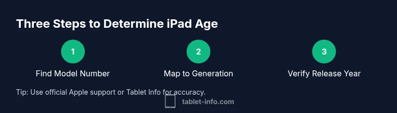 Many iPad owners ask, how old is my ipad? Age isn’t a single date stamped on the device. Instead, it reflects the model generation, hardware revisions, and a window of software support. When you know the exact generation, you can predict which iPadOS versions will run smoothly, which apps might be limited, and how long repairs or battery replacements remain viable. According to Tablet Info, the most reliable way to determine age is to map the model to its release year. This article follows a simple, repeatable method so you can confidently estimate your iPad’s age and plan future upgrades. By starting with the model number, you unlock a precise timeline that informs updates, performance expectations, and service options.