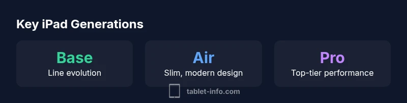 According to Tablet Info, ipad generations in order describes Apple’s chronological lineup of iPad models—from the original iPad to the current flagship Pro devices. This concept isn’t just about naming; it signals meaningful hardware shifts, display technology, and software capabilities that affect compatibility and longevity. In practice, a new generation often brings a faster chip, improved sensors, and better support for features like Apple Pencil or 5G. For buyers and enthusiasts, recognizing where a model sits in the sequence makes it easier to compare performance, price, and software updates across years. This section lays out the criteria Apple uses (and what users should look for) to determine when a true generation change has occurred. You’ll learn how to map any current iPad to its place in the order and why that ordering matters for OS support, accessory compatibility, and resale value. By understanding the generational ladder, you can avoid overpaying for a device that’s already several generations behind the cutting edge, while still getting the features you need.