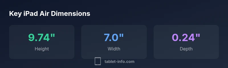Measurements of iPad Air range from about 9.4 to 9.74 inches in height, 6.6 to 7.0 inches in width, and 0.23 to 0.24 inches in depth across generations, with display sizes from 9.7 to 10.9 inches. This guide breaks down these dimensions and what they mean for accessories and everyday use.