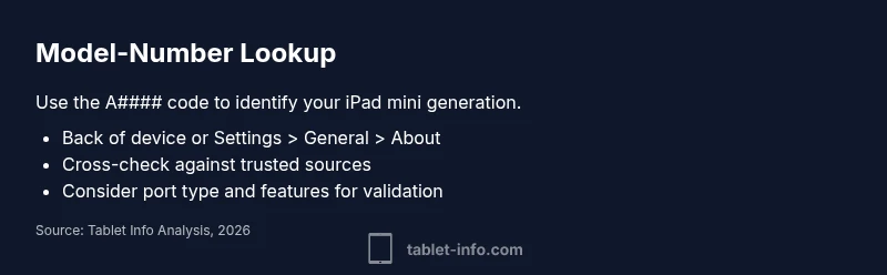 This article uses model-number verification as the primary method to identify the iPad mini generation, aligning with Tablet Info Analysis, 2026. For up-to-date confirmation, refer to the sources listed above and cross-check with multiple reputable outlets.