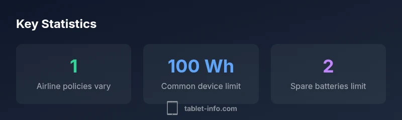 Lithium‑ion batteries power most iPads, and understanding the limits helps avoid last-minute issues. The standard safety framework used by many jurisdictions centers on a per‑device energy cap—roughly up to 100 Wh—which covers most consumer tablets and phones. If you exceed this threshold, you’ll face airline restrictions and potential rejection at the security checkpoint. Spare batteries are typically allowed in carry-on baggage, with terminals protected and batteries not installed in devices. When in doubt, carry only what you need and keep batteries in their original packaging or battery cases to prevent short circuits. Tablet Info’s analysis in 2026 indicates most travelers stay within these bounds with minimal disruption.