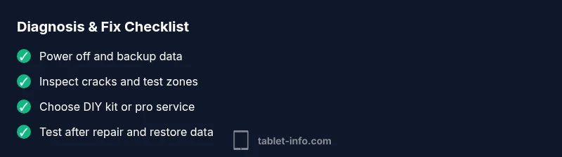 A broken screen ipad is usually due to physical damage from a drop or pressure. Begin by powering off safely and backing up your data. If the touchscreen remains responsive around intact areas, you may try a firmware reset; otherwise, plan for a screen replacement—either with a DIY kit or by a certified technician.