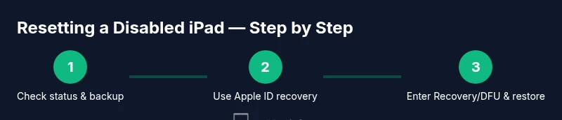 Learn how to reset a disabled iPad safely using Apple ID recovery, Recovery/DFU modes, and data restoration from backups. This step-by-step guide covers precautions, timelines, and when to seek Apple Support.