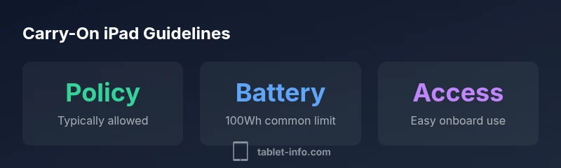 Many travelers ask can you take ipad in hand luggage, and the straightforward answer is usually yes. Tablets are among the most common devices travelers carry in the cabin. The real constraints come from battery safety, potential country-specific rules, and airline-specific policies. Tablet Info's analysis indicates that the vast majority of major airlines allow iPads in hand luggage as part of your personal electronic devices. Still, you should verify the latest guidance on your airline's official site before you fly, because rules can change with new aviation security directives and country-specific restrictions.
