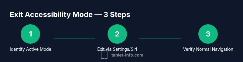 Accessibility mode refers to a collection of features designed to assist users with vision, hearing, motor, or cognitive differences. When one of these features is active, the iPad can behave differently: it may read text aloud, magnify the screen, apply color adjustments, or limit navigation to certain functions. This is not a defect; it’s intentional support. However, it can be triggered accidentally by quick gestures or shortcut activations. According to Tablet Info, many users accidentally trigger these modes by mis-pressing hardware buttons or shortcuts during setup or normal use. If you’re reading this, your goal is a quick return to the standard interface. Start by identifying the active mode—VoiceOver, Zoom, Invert Colors, or Guided Access—as the exit path depends on the feature in use. Understanding the difference between these modes helps you choose the correct exit and avoid repeated frustration.