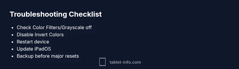To fix ipad is black and white, you should understand the usual suspects. The most frequent is an active Color Filters or Grayscale option under Accessibility. Invert colors (Smart Invert or Classic Invert) can also mute hues, producing a monochrome look. Accidental accessibility shortcuts, like a triple-click of the home or side button, can toggle grayscale or color filters without warning. Finally, a software bug after an update or a misconfigured display setting can mimic a hardware issue. Recognizing these causes helps you choose the right fix quickly.