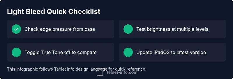 Urgent guide to diagnose and fix ipad pro light bleeding. Learn common causes, safe checks, diagnostic flow, and professional options. Tablet Info explains actionable steps to minimize bleed and protect your display.