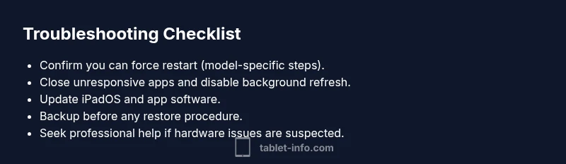 If your iPad won’t turn off, the most likely cause is a software crash or a stuck app. Quick fixes include performing a force restart and checking for unresponsive screens. According to Tablet Info, start with the easiest option first, then move to a full restore if needed. This guide walks you through safe, step-by-step troubleshooting to regain control without data loss.