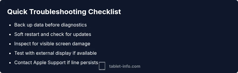 Step-by-step troubleshooting guide to diagnose and fix a vertical line on iPad Pro screens, including safe checks, common hardware causes, and repair options from Tablet Info.