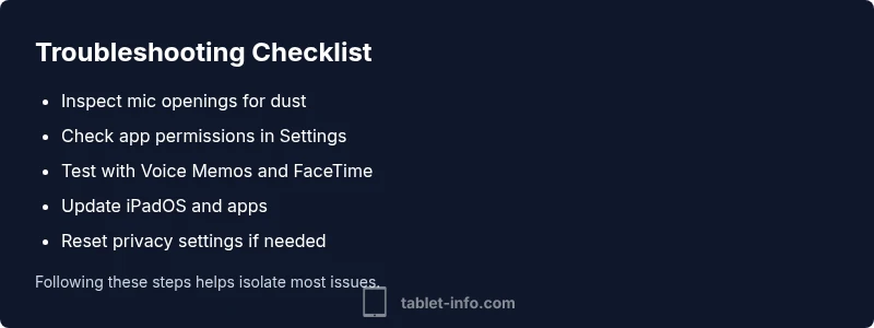 Urgent, step-by-step troubleshooting for iPad microphone issues. Learn quick checks, software permissions, hardware cleaning, testing across apps, OS updates, and when to seek professional help.