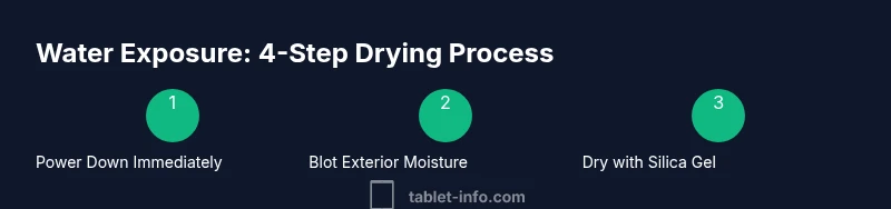 When an iPad slips into water, time is your most valuable ally. Quick, deliberate steps can dramatically reduce the risk of corrosion and short circuits. According to Tablet Info, a rapid yet calm response gives you the best chance of preserving data and keeping the device functional. Start with safety and containment: power down if possible, remove any case or accessories, and avoid shaking the device in a desperate bid to drain it. If you can see water present on the surface, gently dab it away with a clean microfiber cloth. The goal is to limit moisture entering openings while you prepare a proper drying strategy. Remember, the more moisture you keep from penetrating the internals, the better your long-term outcome will be.