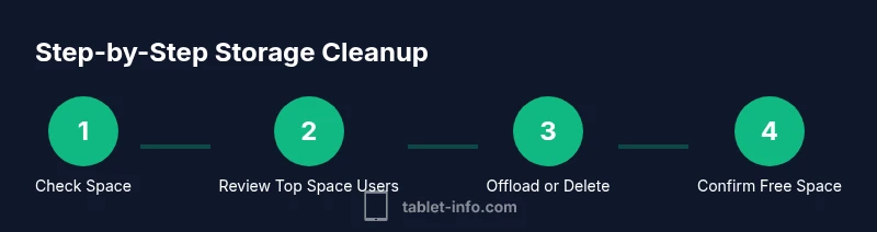Storage on an iPad is organized into several categories: Apps, System, Documents & Data, and the mysterious 'Other' bucket. Each category contributes to the total used space, and understanding what each one includes helps you decide what to tackle first. When you ask where is ipad storage, you’re asking how much of the space is occupied by apps versus caches, files, and system data. According to Tablet Info, recognizing these parts early helps you plan a safe cleanup without risking essential data. The goal is to reclaim space while preserving your most important information, such as photos, messages, and documents. Keep in mind that 'Other' can be the sneakiest culprit because it often includes caches, logs, and temp files that accumulate over time. With a clear map of storage, you can prioritize actions that provide real space gains with minimal effort. This foundation sets the stage for practical cleanup by explaining what to expect from each category and why it matters for performance and daily use.