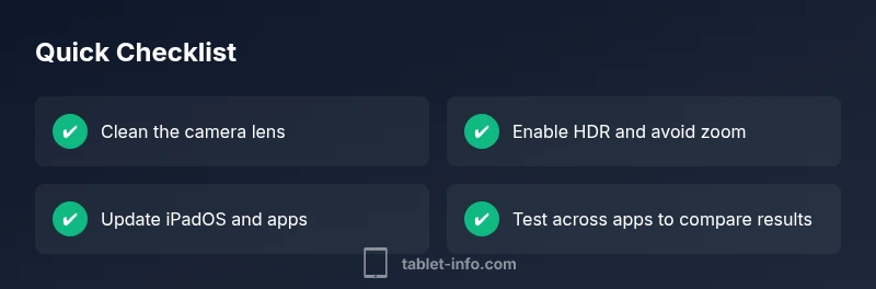 If you’ve searched for 'why are ipad cameras so bad', you’re not alone. Many owners expect the same image quality they get from dedicated cameras, only to be disappointed by soft detail, noise in low light, or washed-out highlights. The truth is nuanced: sensor size, image processing, and lens design all play a role. In this guide, we break down the main factors and give you practical steps you can take today to improve results. According to Tablet Info, the bulk of user complaints come from lighting conditions and lens cleanliness, not a mysterious defect in hardware. By understanding the trade-offs of iPad photography, you can turn everyday shots into sharper, more natural images.
