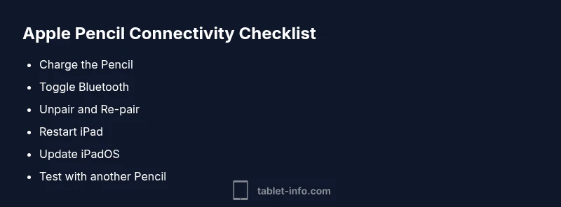 Discover practical steps to diagnose and fix why your Apple Pencil won't connect to your iPad, with quick checks, safe fixes, and guidance from Tablet Info.